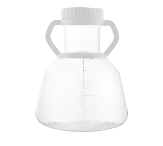 EZBio® 5L Erlenmeyer Flask, made from strong polycarbonate, this space-saving flask is E-Beam sterilized and ready-to-use for shaking applications in lab and bioprocess setups.