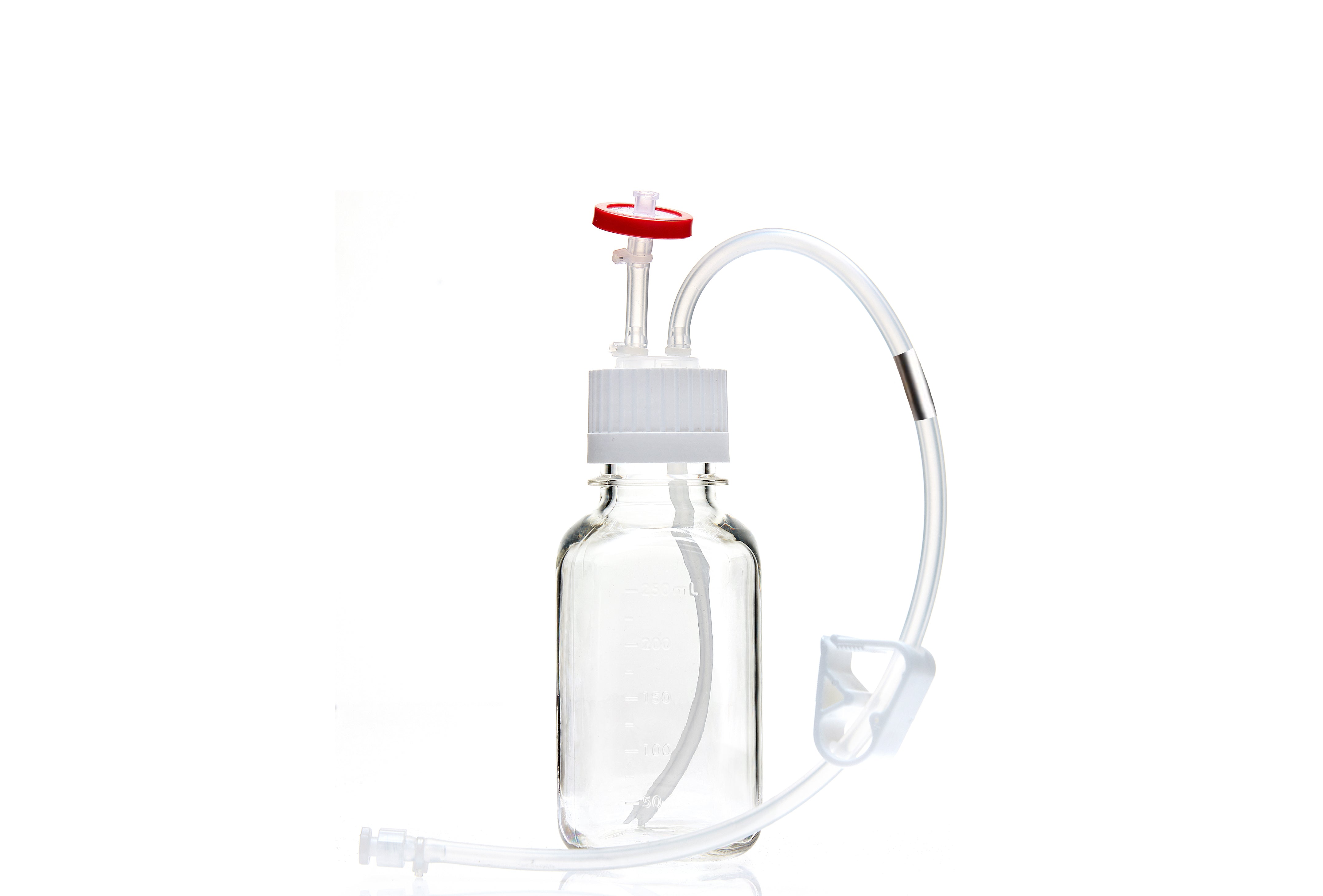 EZBio® MTO 250mL Bottle Assembly, 38-430 VersaCap®, w/ Pinch Pipe, 10/CS