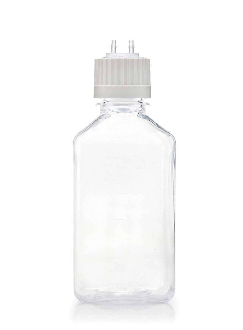 EZBio® Titanium Square Bottle Assembly, PETG, 500mL, Versacap White 38-430 w/ 2x1/4" HB 1x1/8" HB, Non-Sterile - 10-cs